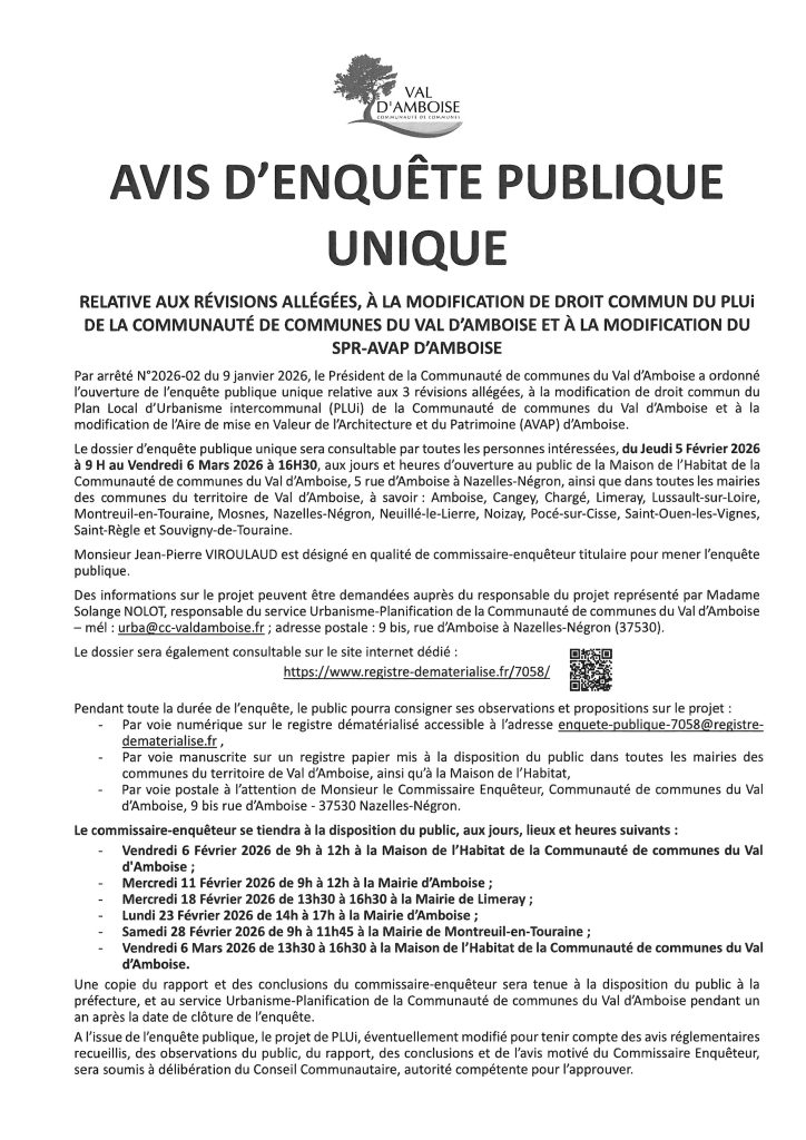 Plan Local d’Urbanisme Intercommunal – Enquête publique du 5 février au 6 mars 2026 inclus